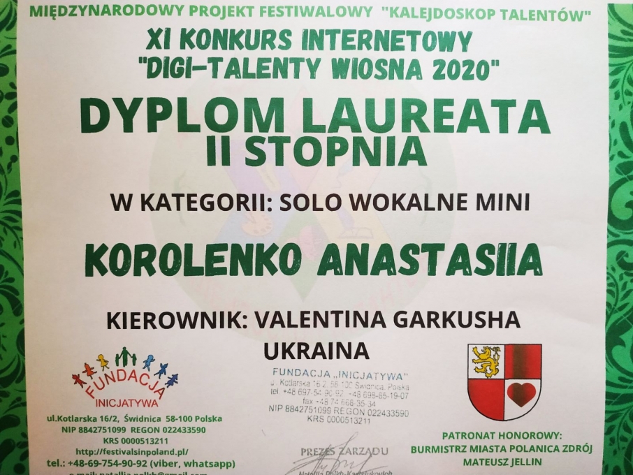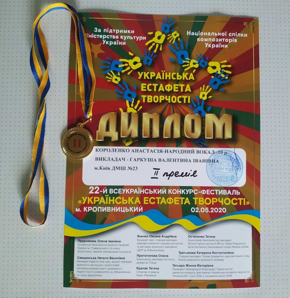 Каскад перемог учениці КДМШ № 23 Анастасії Короленко